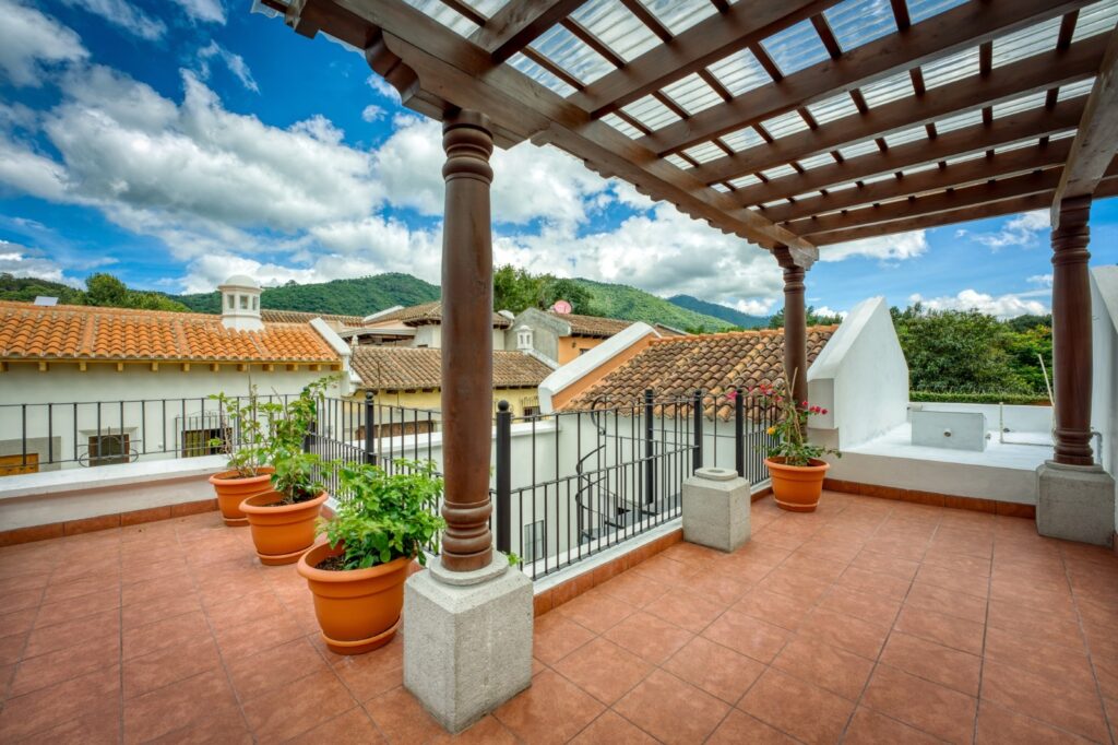 This 3-bedroom, one-level house with a terrace for sale here in Antigua Guatemala is one of my latest listings. Located in a gated community on the southern edge of Antigua, close to the Telares Shopping mall, the house is walkable to the historic centre.